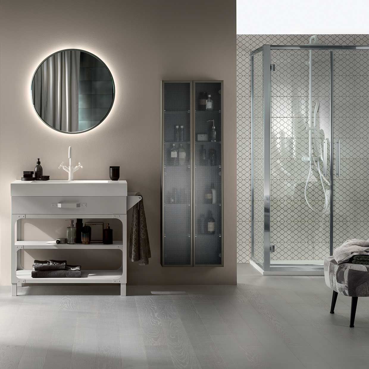 The Diesel Misfits Bathroom is the bathroom version of the new collection by Scavolini in partnership with Diesel Living. The shapes of the Misfits trolley and cupboard have been restyled to accommodate the washbasin: an original proposition with a strong personality designed for both residential and contract settings.